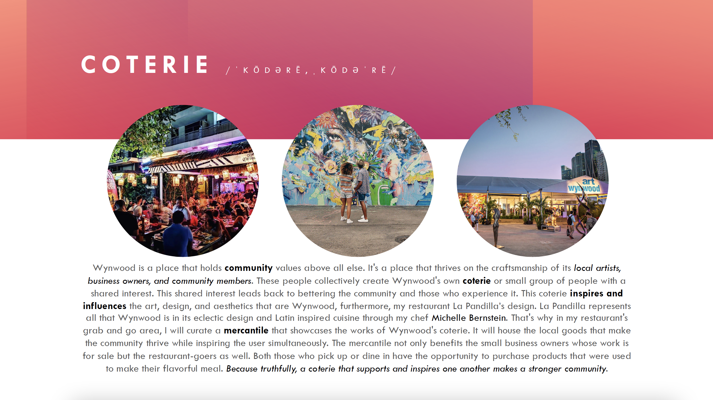 Tasked with creating a unique dining experience, this project was based on community connection. The restaurant not only has indoor and outdoor dining, but a mercantile that is comprised of local merchants goods and produce.